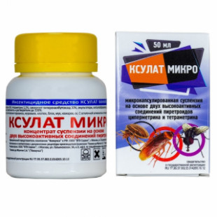 Инсектицидное средство «Ксулат МИКРО» - это жидкий микрокапсулированный концентрат в виде суспензии белого цвета. В качестве действующего вещества содержит циперметрин (10%), тетраметрин (2,2%), синергист пиперонилбутоксид (ППБ) - 10%, а также эмульгаторы, капсулообразователь, другие вспомогательные компоненты и растворители до 100%